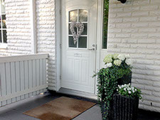 Havuryhmä valkoisella jaloangervoreunuksella paritalon pihassa.